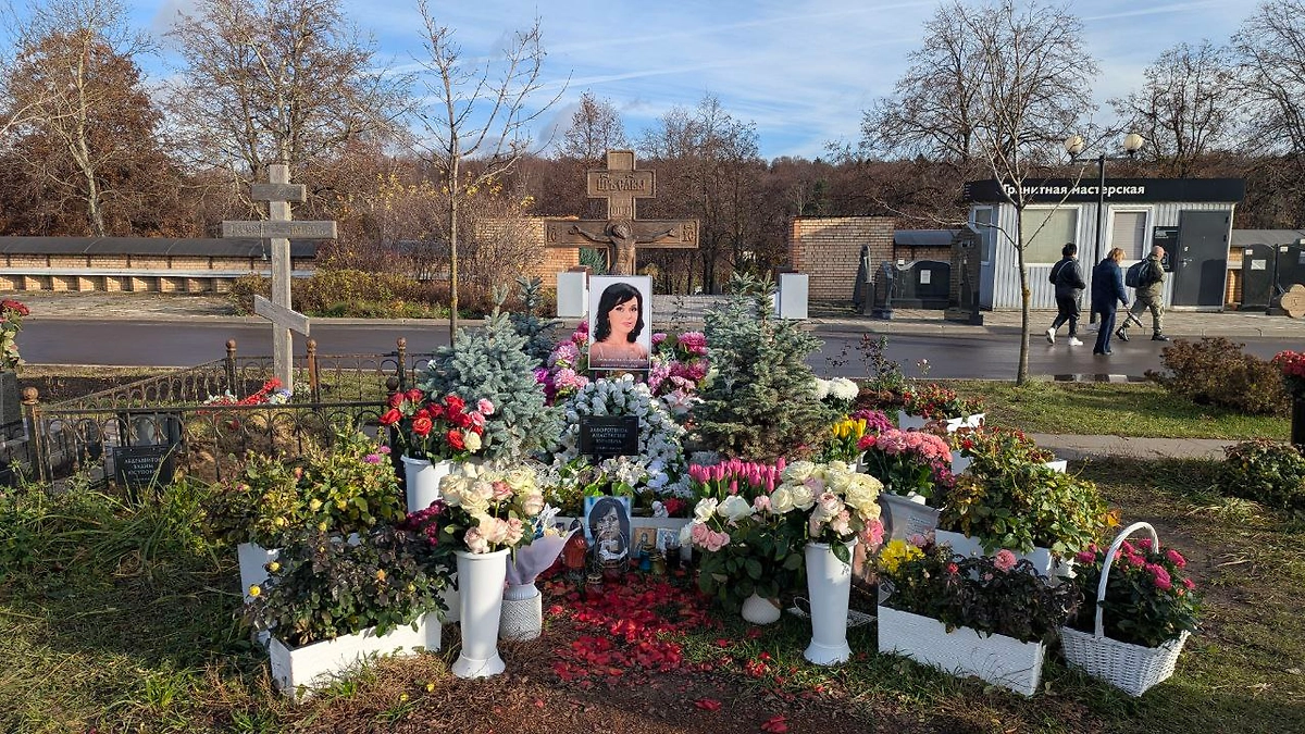 Могила Анастасии Заворотнюк, подарившей зрителям незабвенную Вику из культового сериала «Моя прекрасная няня», продолжает утопать в цветах. Корреспондент Life.ru отметил, что пристанище народной любимицы украшают роскошные розы, а пространство вокруг портрета актрисы усыпано алыми лепестками.
