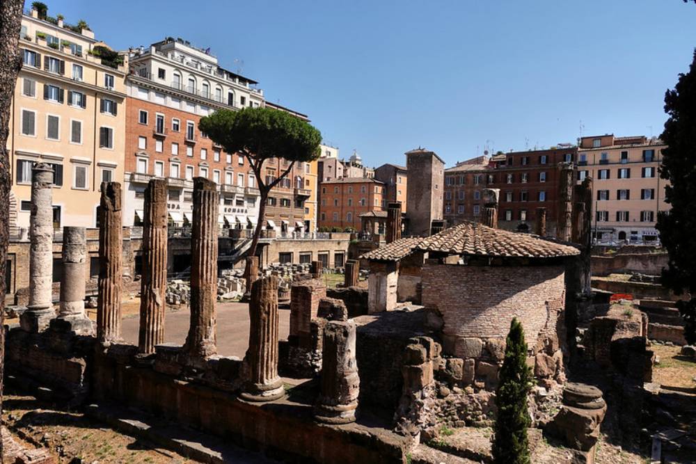 Храмовый комплекс и Театр Помпея были найдены в 1927 году во время строительных работ. Со временем это место прославилось тем, что здесь прячутся бездомные кошки. В 1990-х годах на этом месте открыли для них приют