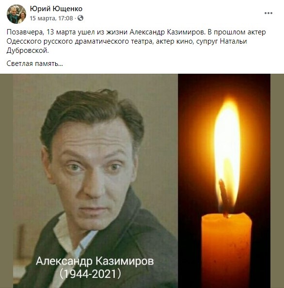 Отмечается, что артист умер 13 марта. Причина его смерти не