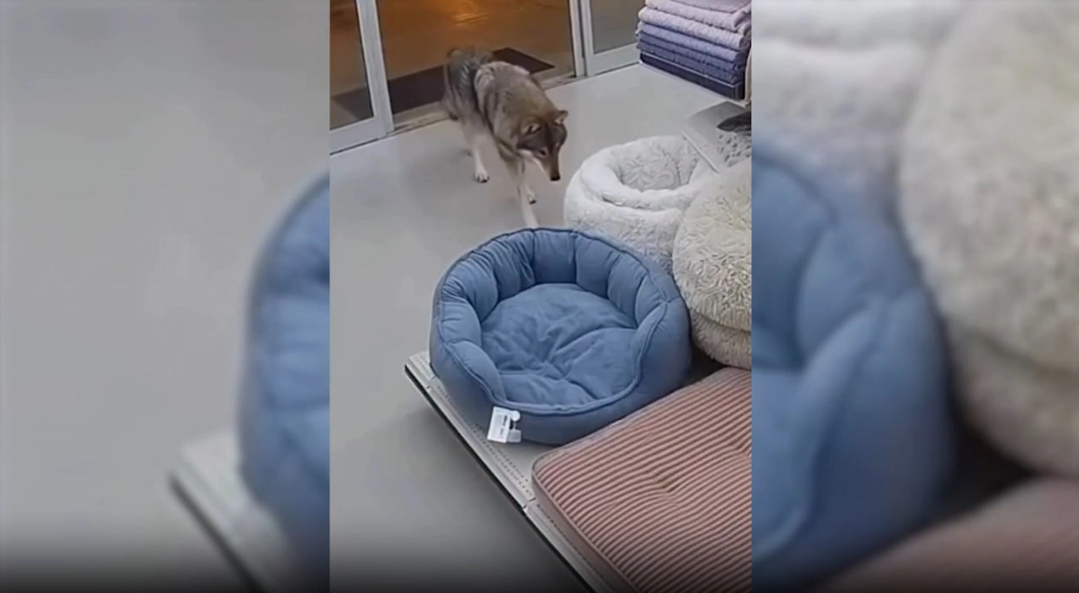 Автоматические двери услужливо распахнулись перед зверем и он проник в торговый зал. По словам посетителей и персонала, волк выглядел уставшим, но вёл себя удивительно спокойно и не проявлял агрессии. Он направился к стеллажам, выбрал лежанку и примерно минуту тестировал её на удобство, устраиваясь на ней. Затем хищник схватил добычу и скрылся в неизвестном направлении.