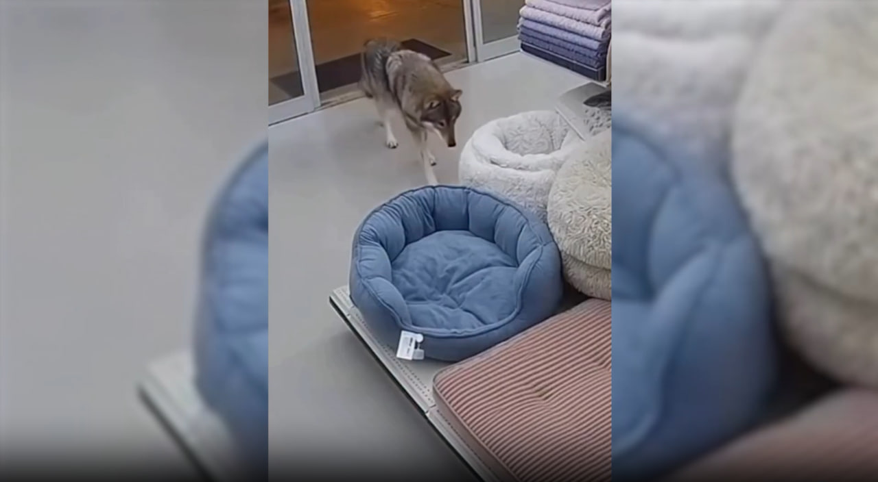 В Мурманске волк зашёл в зоомагазин и унёс с собой лежанку, прихватив её прямо с витрины. Кадры появились в соцсетях.