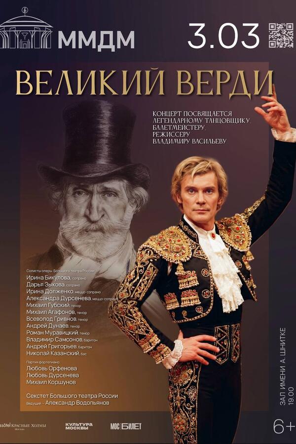 А посвящена программа легендарному танцовщику 20 века Владимиру Васильеву, которого часто называют «гением танца» Кстати, Владимир Викторович имеет прямое отношение к творчеству Верди (при том, что этот композитор балетов не писал).