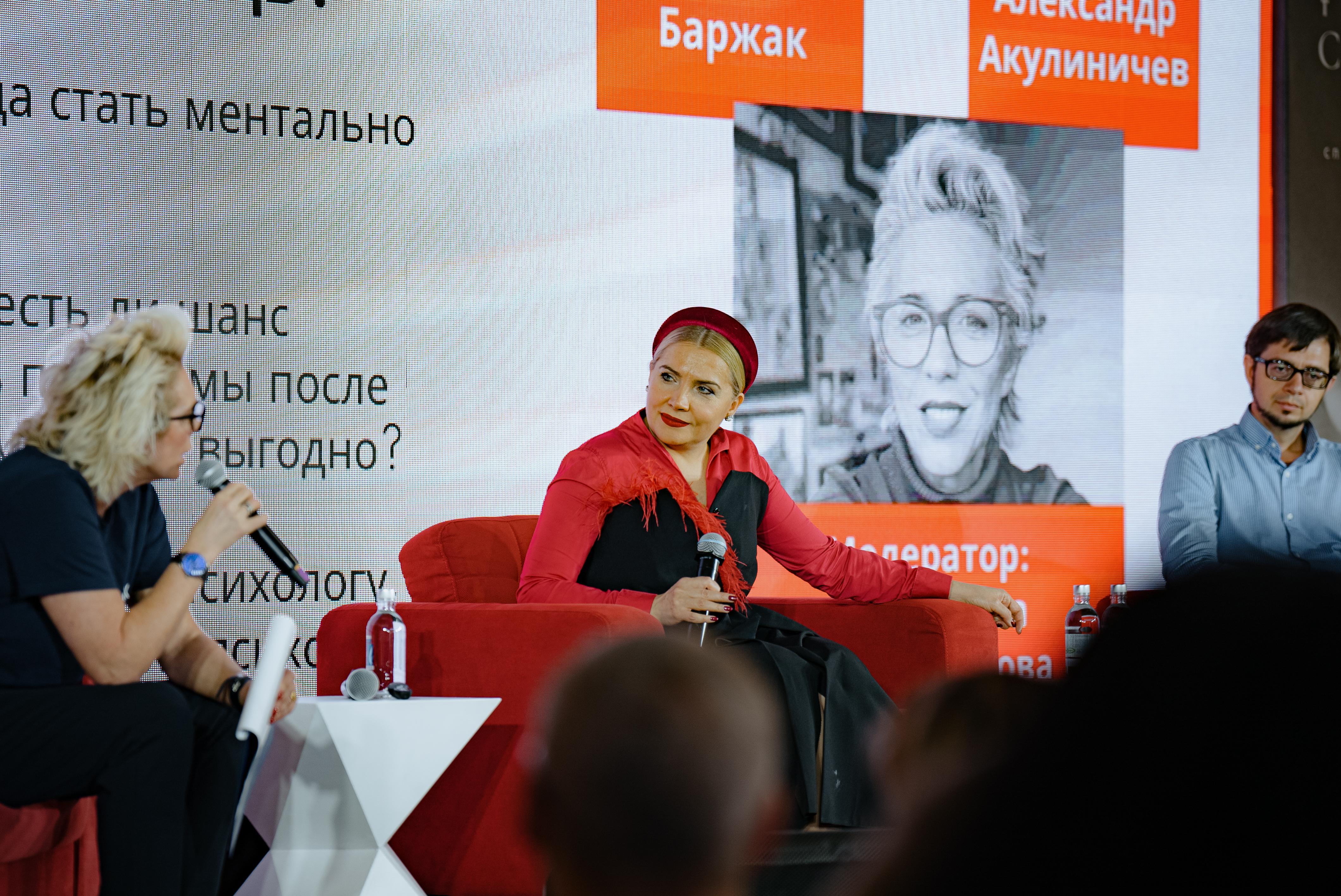 Программу открыла дискуссия, посвященная работе с психологом. Главный редактор сайта Александр Акулиничев и социальный психолог Ирина Баржак поговорили о том, что же такое работа с психологом в XXI веке — мода, зависимость или реальная помощь, чем полезна групповая психотерапия и назвали три вопроса, которые нужно задать психологу, чтобы обрести уверенность в том, что это «твой» психолог.