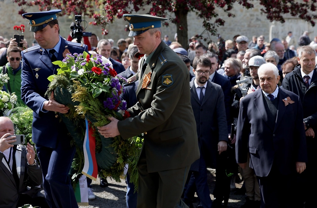 «Состоялась торжественная церемония возложения венков и цветов к монументу, установленному в память о легендарной встрече союзников, а также на советском мемориальном воинском кладбище, где захоронены павшие в боях за освобождение города красноармейцы», — отметили в дипведомстве.