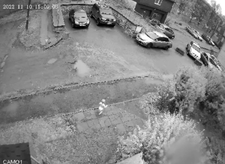 На камерах видеонаблюдения видно, что ребенок почти голышом ходит по лужам. На улице середина ноября, столбик термометра показывал минусовую темепратуру. К счастью, мимо на велосипеде проезжал курьер, он не остался равнодушным и остановился, чтобы держать ребенка в поле зрения. Через какое-то время к ним подошла пенсионерка, живущая рядом. Именно в ее квартиру и отвели малышку, чтобы оттуда вызвать скорую и полицию.