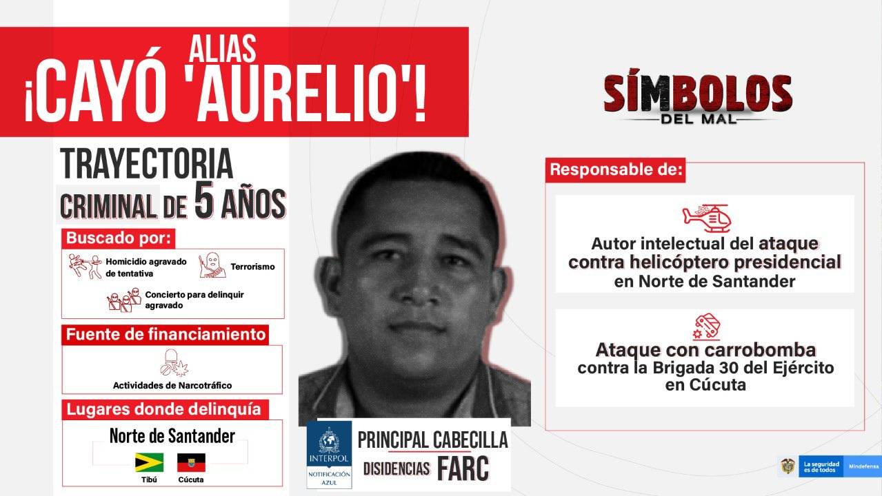 "Мы выследили и поймали его — человека по прозвищу Аурелио, предполагаемого организатора террористической атаки на вертолёт президента Ивана Дуке 25 июня в Кукуте. Сегодня его поймали в рамках спецоперации", — Диего Молано в своём аккаунте в "Твиттере".