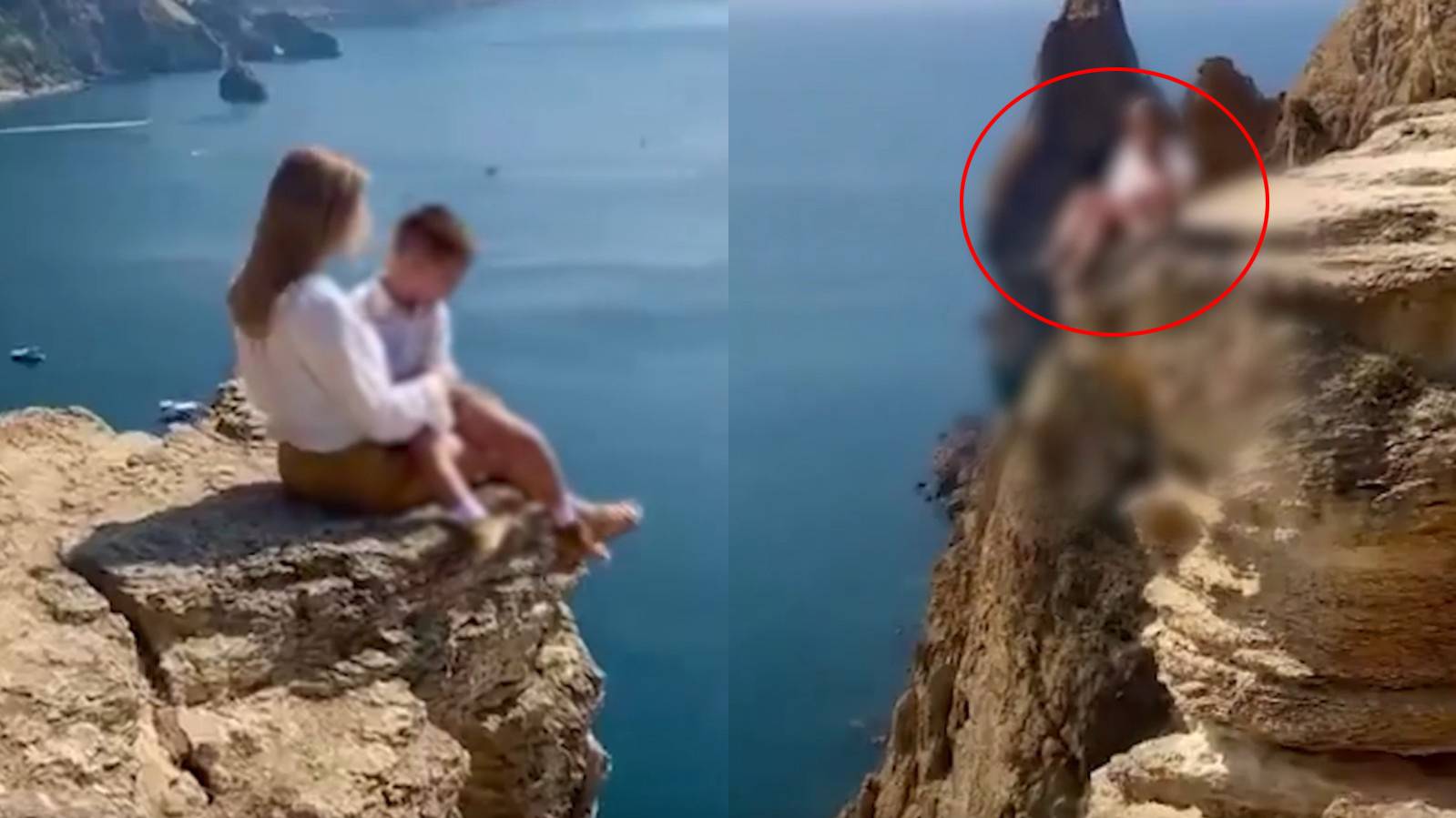 В соцсетях разлетелся ролик, который нельзя смотреть без содрогания. На его кадрах мать за руку ведёт маленького сына к обрыву, а затем гордо позирует на краю, усадив малыша на колени. Женщина выглядит невозмутимой и как может наслаждается съёмкой.