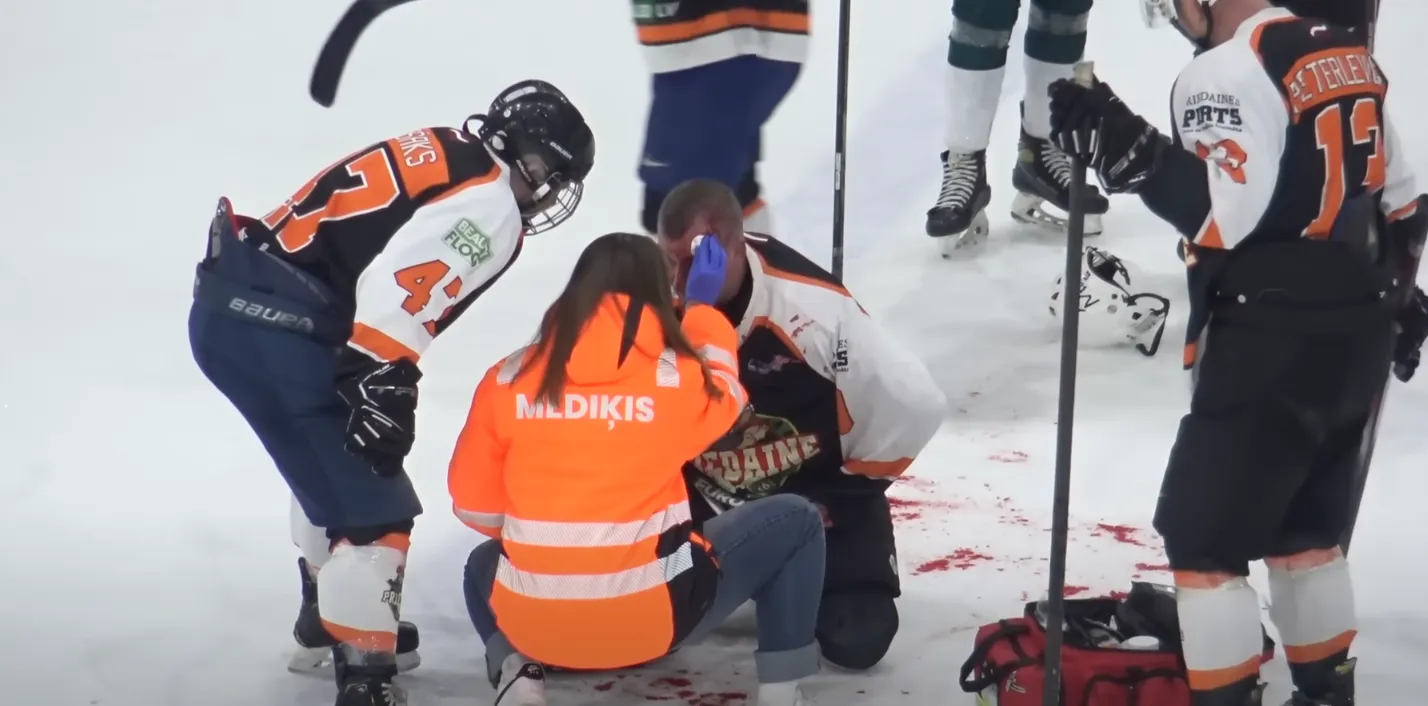 На любительском хоккейном матче в Латвии между командами