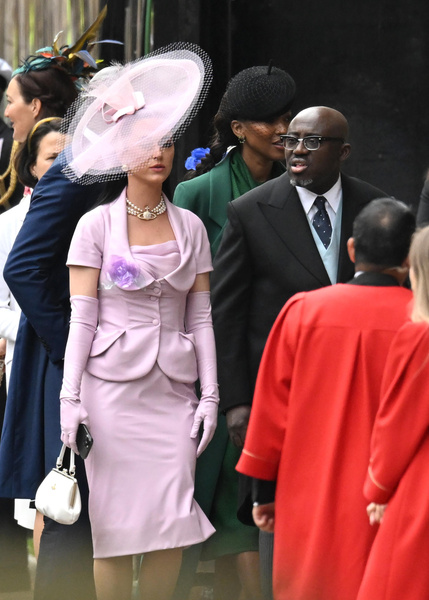 Почетной гостьей церемонии станет Кэти Перри. Она уже тоже приехала на коронацию — в розовом платье и в причудливой шляпке. Образ певица дополнила колье Vivienne Westwood из искусственного жемчуга и кристаллов. Сопровождает ее не супруг Орландо Блум, который, судя по всему, остался дома с дочкой, а главный редактор британского Vogue Эдвард Эннинфул.