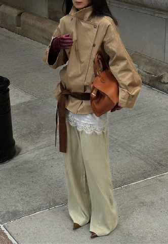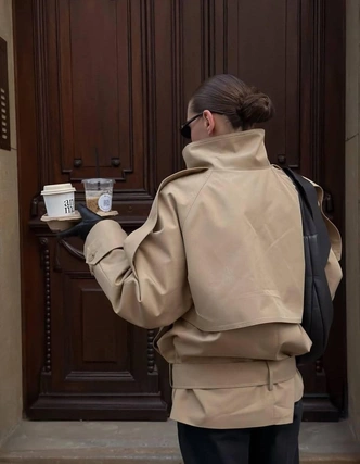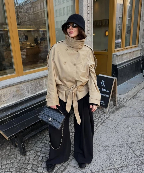 Такой крой ломает стереотипное восприятие плаща как чего-то строгого и привычного. Тренч с заниженной талией выглядит расслабленно, современно и при этом очень элегантно