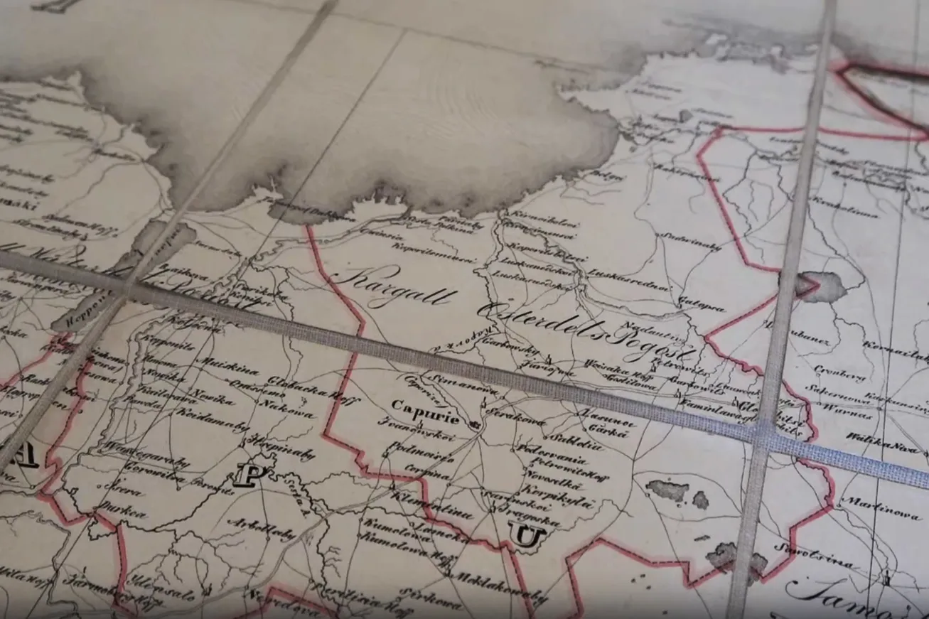 Карта имеет особую метку Библиотеки Павловского дворца, что подтверждает её принадлежность России. Как рассказали сотрудники музея, карта была издана в 1827 году, её автор — штабс-капитан Военно-топографического депо А.С. Бергенгейм. Он составил документ, собрав и изучив огромное количество материала. Карта находится в специальном футляре, сделанном в форме книжного переплёта