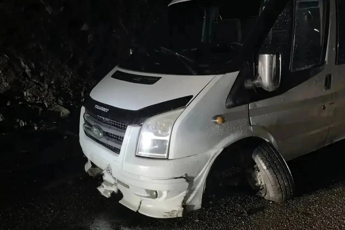 «На 48-ом км Транскавказкой автомагистрали под камнепад попал микроавтобус, в котором находилось пятеро пассажиров и водитель. Транспортное средство получило незначительные повреждения. Пострадавших нет. Все отправились к месту назначения на попутном транспорте», — говорится в сообщении ведомства.