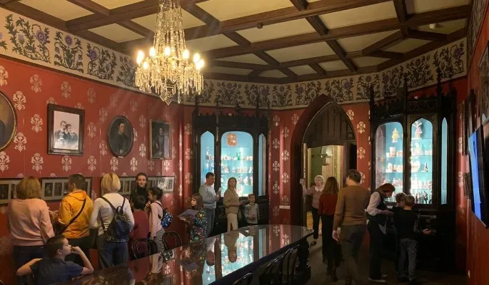 Театральный музей имени Бахрушина – здание бывшей усадьбы А. А. Бахрушина в Замоскворечье – был построен в 1896 году по проекту архитектора К. К. Гиппиуса в формах ранней английской готики. Наружное убранство сооружения, за исключением отдельных деталей, хорошо сохранилось, но роскошные интерьеры, производившие на современников большое впечатление, понесли большие потери с годами.