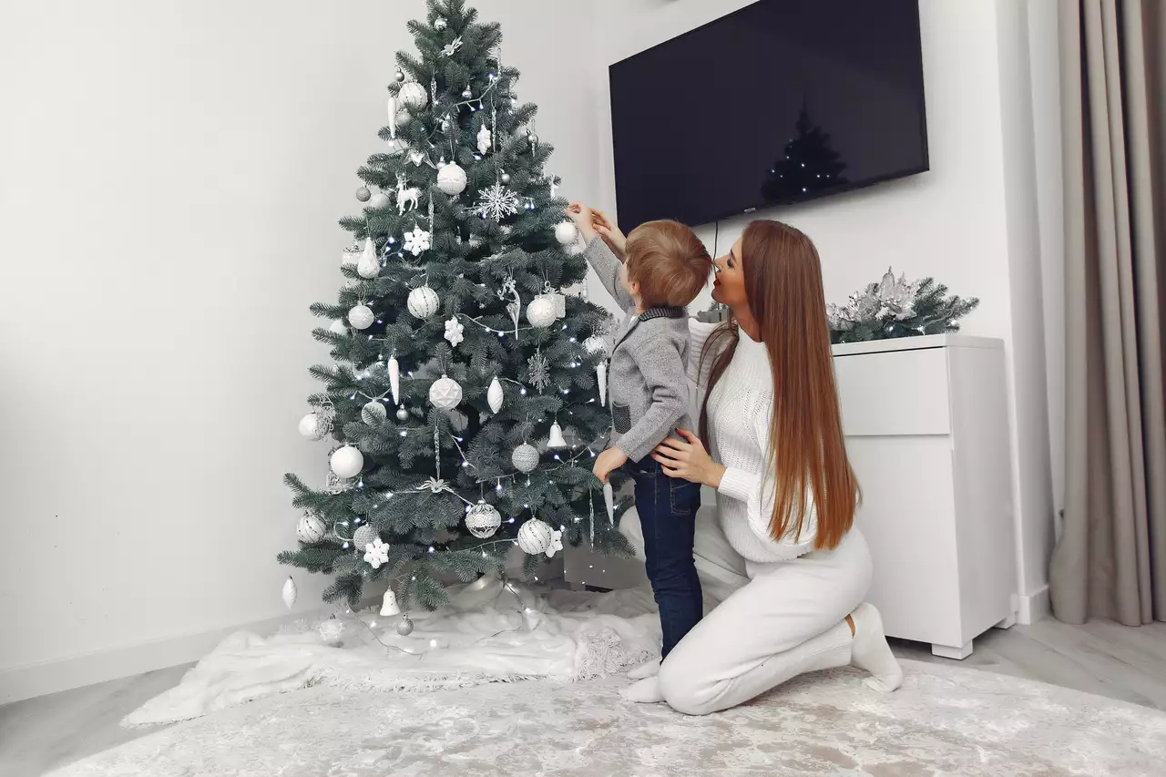 А вот тут стоит быть осторожнее, если вы обладетель крошечной однушки или студии. В маленьких квартирах работает правило: чем тише, тем дороже. Крупные игрушки вместо россыпи мелких, спокойные цвета, мягкий свет. Елка не должна спорить с интерьером — она должна его дополнять.