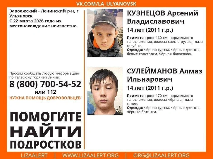 В Ульяновске второй день продолжаются поиски двух 14-летних подростков — Алмаза и Арсения, которые исчезли вечером 22 марта. Школьники перестали выходить на связь с родителями, а уже ночью обеспокоенная мать одного из мальчиков обратилась в полицию. С этого момента началась масштабная поисковая операция, к которой подключились спасатели, следователи и волонтеры.