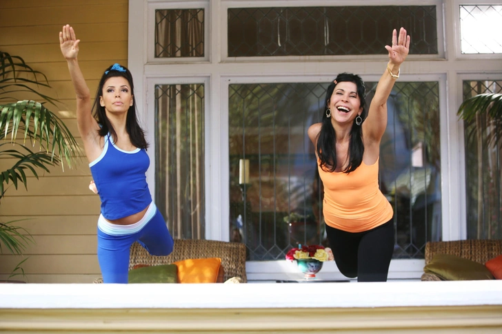 Как пример эстетики, которая действительно вдохновляет, они начали приводить спорт времен нулевых: Пэрис Хилтон тогда ходила в зал (делала она это редко, но все же) в своих легендарных плюшевых трениках с надписью Juicy Couture из стразов на пояснице, а Жизель Бюндхен готовилась к Неделям моды в серых просторных капри и ярких футболках. Еще одной иконой стиля стала главная героиня сериала «Отчаянные домохозяйки» Габриэль Солис, которая вообще не умела быть скромной и считала, что прятать свою индивидуальность — грех. Тренд быстро обзавелся своим названием — yoga moms — и вышел за пределы спорта и стиля.