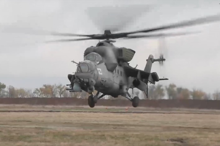 Экипажи ударных вертолётов Ми-35М Центрального военного округа (ЦВО) разгромили украинский опорный пункт ВСУ на Краснолиманском направлении. По РИА "Новости", объект был уничтожен при помощи неуправляемых авиационных ракет.