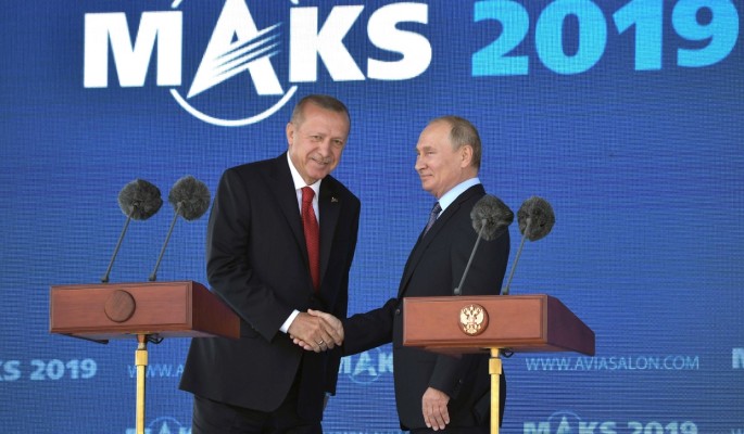 Российский президент продемонстрировал турецкому коллеге лимузин российского производства Aurus проекта "Кортеж"."Президенту Турции назвали цену лимузина – 18 миллионов рублей, он обещал подумать", – рассказал журналист кремлевского пула Дмитрий Смирнов.