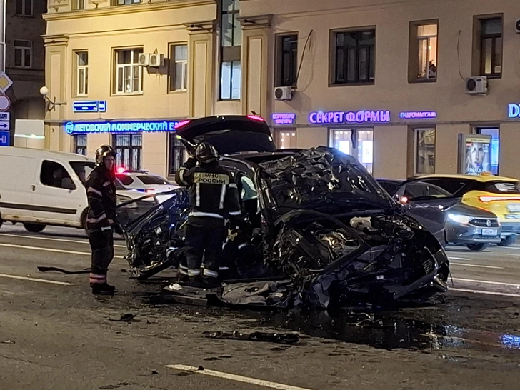 В ночь на 21 апреля в центре Москвы случилась жуткая авария. Мерседес без номеров не вписался в поворот, иномарка снесла курьера, а затем, петляя между рядами, вылетела на встречную полосу.