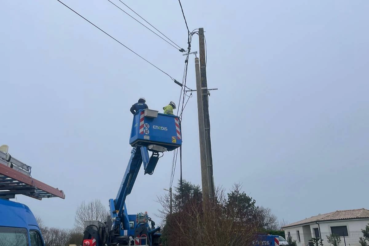 13 февраля Enedis , что к полудню без электроснабжения остались более 450 тысяч домов. Тогда планировалось восстановить подачу питания для 70% клиентов. Бригады работали при сильном ветре и проливных дождях.
