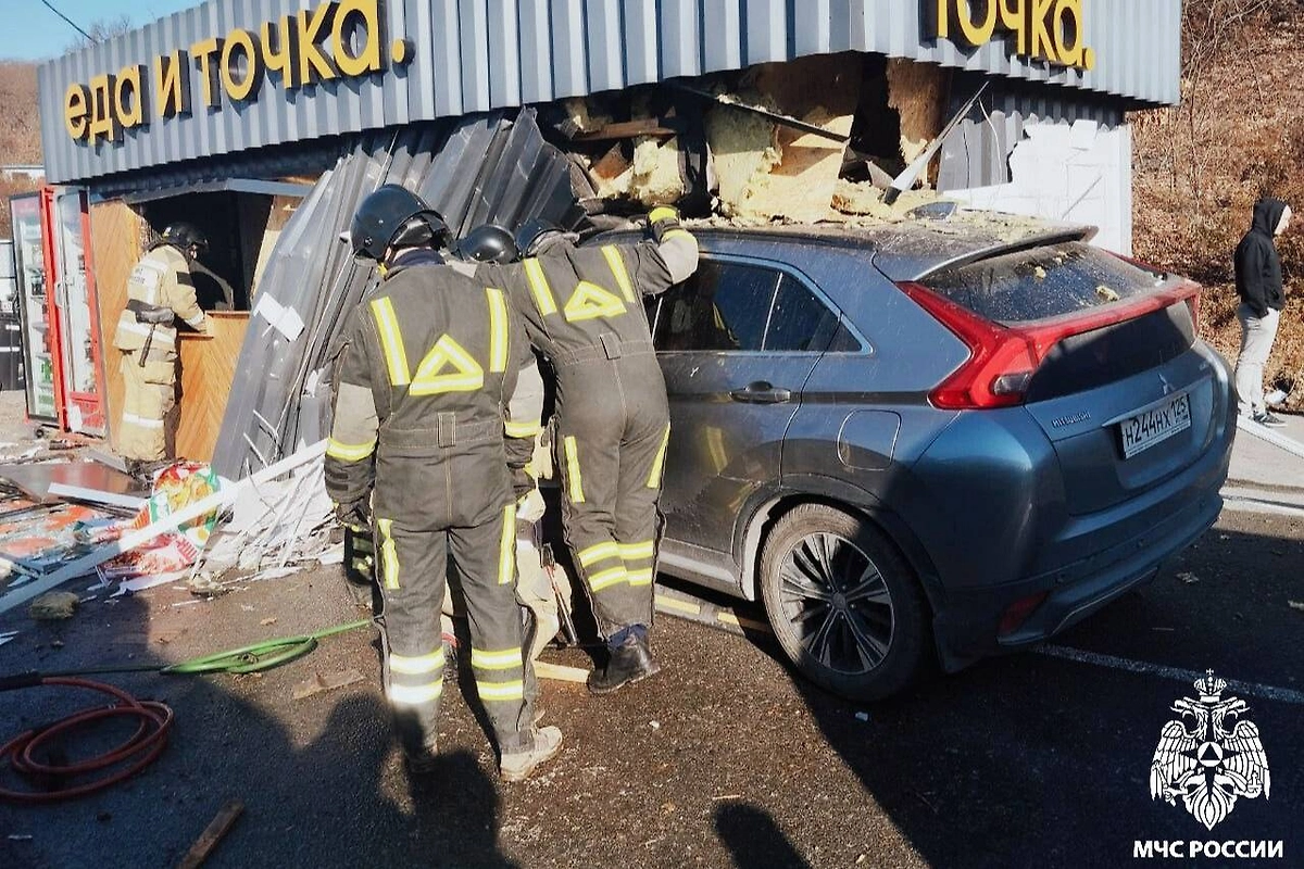 Как сообщает МЧС Приморского края, персонал кафе и водитель иномарки оказались заблокированы. Спасатели смогли вытащить сотрудников заведения и владельца легковушки.