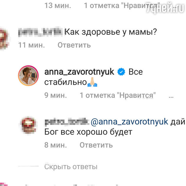 Врачам удалось остановить процесс развития болезни и стабилизировать состояние актрисы, что является очень хорошим признаком. «Дай Бог все будет хорошо», «Какое счастье», «Передавайте ей, что мы очень её ждем и любим», — пишут поклонники Заворотнюк.
