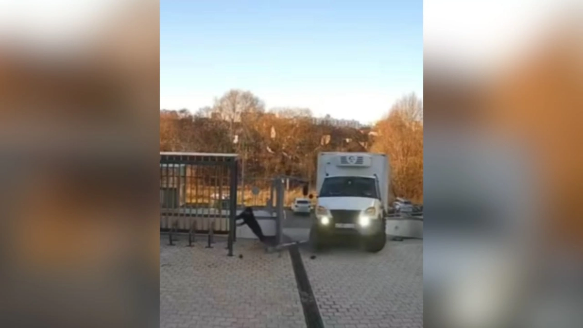 Водитель потерял управление, и автомобиль снёс часть забора, едва не задев охранника. По счастливой случайности, сторож успел отпрыгнуть и не пострадал.