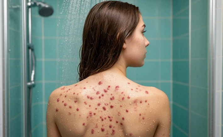 Когда средство смывается, его остатки могут стекать по спине, где расположено большое количество сальных желёз. Смешиваясь с кожным салом и ороговевшими клетками, такие компоненты образуют на коже плёнку, которая может нарушать естественное очищение пор и создавать условия для размножения бактерий, связанных с развитием акне.