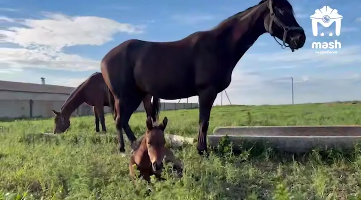 В Акимовском округе Запорожской области кобыла, пережившая обстрел ВСУ конной фермы, родила жеребёнка. Работники хозяйства дали новорождённому кличку Император, сообщает
