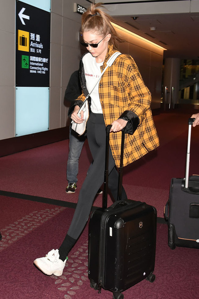 Другая икона стиля современного поколения – красавица и модель Джиджи Хадид – в одежде ценит комфорт и практичность. Основа ее гардероба – базовые вещи, которые она с легкостью может сочетать друг с другом и не тратить много времени, соревнуясь сама с собой в области подбора луков. Как и всякой модели, девушке приходится много летать. Белая футболка, легинсы или джинсы skinny, бомбер или джинсовка и, конечно, солнцезащитные очки, которые скроют как недосып, так и заметут следы бурной ночи.