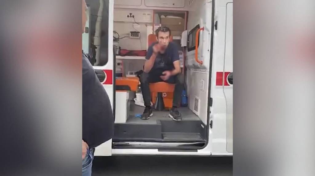 На кадрах, снятых очевидцами, прохожие спрашивают его, зачем он так быстро мчался, но парень отвечает что-то невнятное. На вопрос, пьяный он или принимал запрещённые вещества, он отрицательно качает головой. Парень при этом раскаивается в содеянном и просит дать ему телефон, чтобы "написать одно СМС". Также в кадр попала пожилая женщина, которую медики пронесли прямо мимо скорой, где сидит виновник ДТП