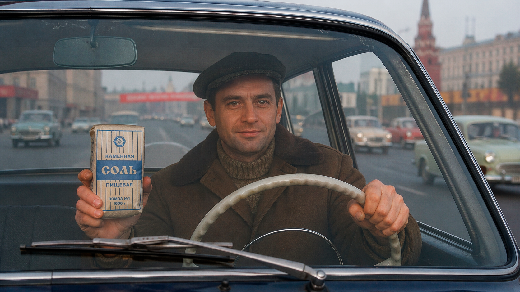 Советские водители насыпали соль в небольшой холщовый мешочек или даже в старый носок и оставляли его на торпеде под лобовым стеклом. Соль медленно, но верно вытягивала лишнюю влагу из воздуха, и стёкла дольше оставались чистыми. Эффект был не мгновенным, но стабильным — мешочек работал весь день, пока не напитывался водой до предела.