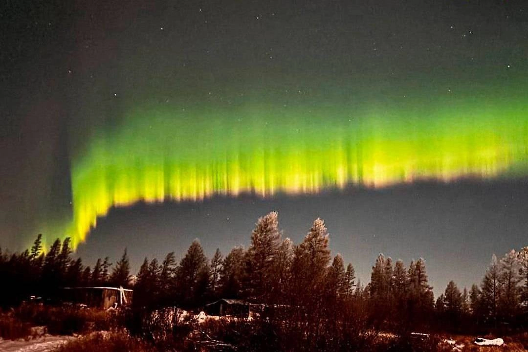 Ночью жители северного камчатского села Аянка стали свидетелями завораживающего полярного сияния. Яркие всполохи украсили небо над населённым пунктом 8 ноября. Местные жители поделились фотографиями этого зрелища, сообщает Telegram-канал SHOT.