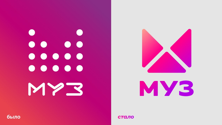Логотип телеканала визуально трансформировался в эпицентр музыкально-развлекательного контента, сохранив преемственную форму буквы «М». Новый лого — это три кнопки «Play», которые сходятся в центре и символизируют точку входа в мир музыки, звёзд, концертов и развлекательных шоу. Кнопка «Play» — узнаваемый символ, обозначающий «включение» и доступ к музыке или видео в любое время. А в случае «МУЗ-ТВ» — переключение на яркие эмоции и полное погружение в атмосферу праздника. Именно это и ожидает от «МУЗ-ТВ» целевая аудитория (по результатам качественных и количественных исследований бренда).