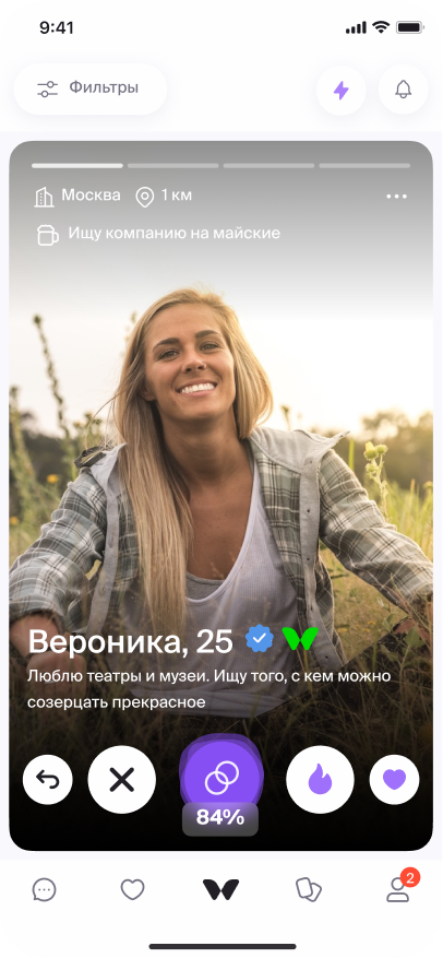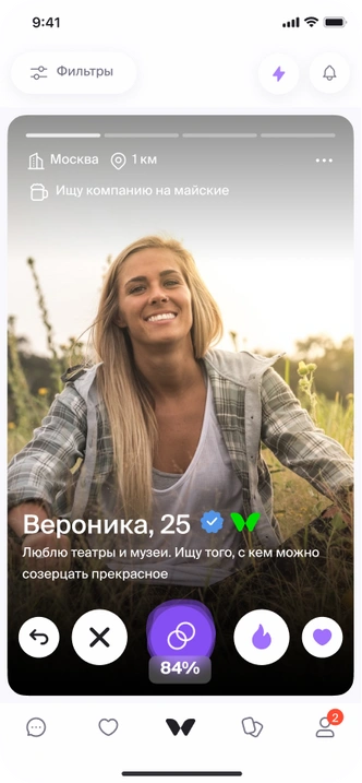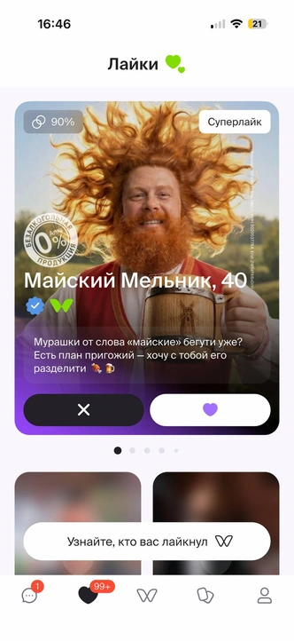 Дополнительно в приложении появился специальный профиль — «Майский Мельник». Это персонаж-проводник, который помогает пользователям определиться с форматом отдыха и перейти к подбору подходящей компании. Его анкета размещена наравне с другими пользователями и собрала более 30 000 ответных лайков. А взаимодействие с ним становится отправной точкой для планирования майских выходных.